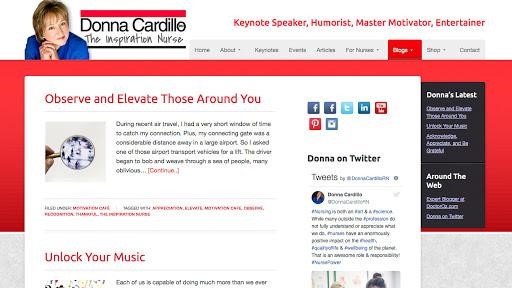 Donna Cardillo, RN, is the “Inspiration Nurse.” She’s a writer who travels the world speaking to help professionals — nurses or others — to reach their full career potential. On top of all this, she runs two blogs: “Motivation Cafe” and “Nurse Power!” Motivation Cafe is an uplifting blog with a more personal touch, including posts like “You Are Not Alone: A Nod to Caregivers.” Nurse Power! is Cardillo’s second blog, which is full of great informational content for nurses, such as questions to prepare yourself to answer in a job interview or the right amount of notice to give when resigning from a position.